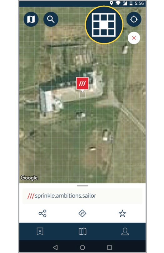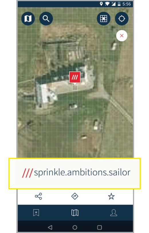 You’ll see the 3 word address displayed at the bottom of the screen.